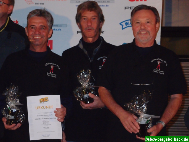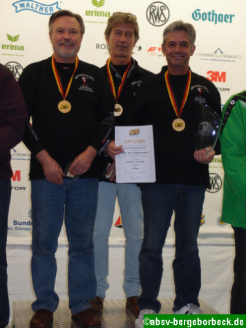 "Nachdem sich die Mannschaft der ABSV Essen-Bergeborbeck mit den Schützen Antonio Castilla, Franz Peter Koziel und Bernhard Stania bei den Landesverbandsmeisterschaften 2015 mit dem neuen Landesrekord von 899 Ringen für die Deutschen Meisterschaften in Dortmund qualifiziert hatten, konnte diese Mannschaft mit dem gleichen Mannschaftsergebnis den Titel des Deutschen Meisters sichern. Auf den weiteren Plätzen lag der SC Bodelschwingh (Westfälischer Schützenbund) mit 898 Ringen und der ZSG Bavaria Unsernheim (Bayerischer Sportschützenbund) ebenfalls mit 898 Ringen".